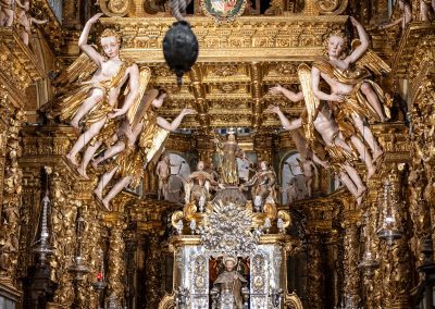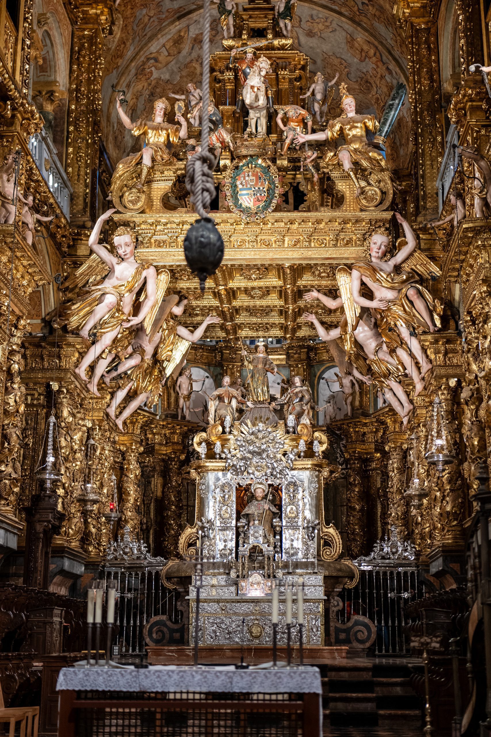 Pero el Pórtico es solo el comienzo. Nuestro recorrido te llevará a través de las naves resonantes de la catedral, su museo catedralicio repleto de tesoros, y al imponente Altar Mayor. Aquí, bajo las bóvedas centenarias, se encuentra la tumba del Apóstol Santiago, un sitio de profunda reverencia y peregrinación.