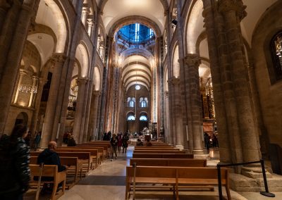 Serás testigo del majestuoso Botafumeiro, el incensario gigante que, en ocasiones especiales, traza arcos perfumados a través de la nave, y descubrirás las historias que resuenan en cada rincón de este lugar sagrado.